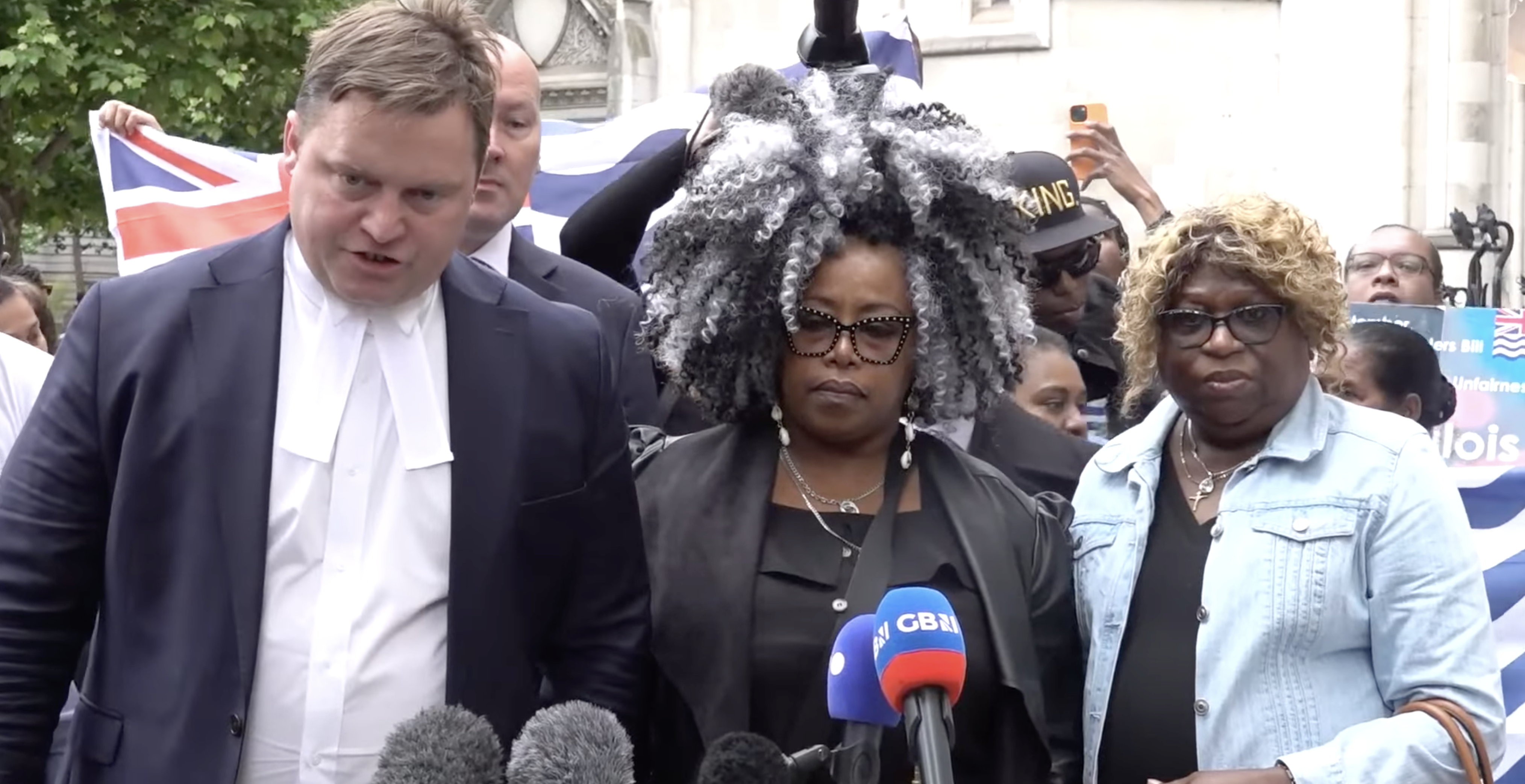 Bertice Pompe & Bernadette Dugasse met hun advocaat bij de High Court in Londen (screenshot)