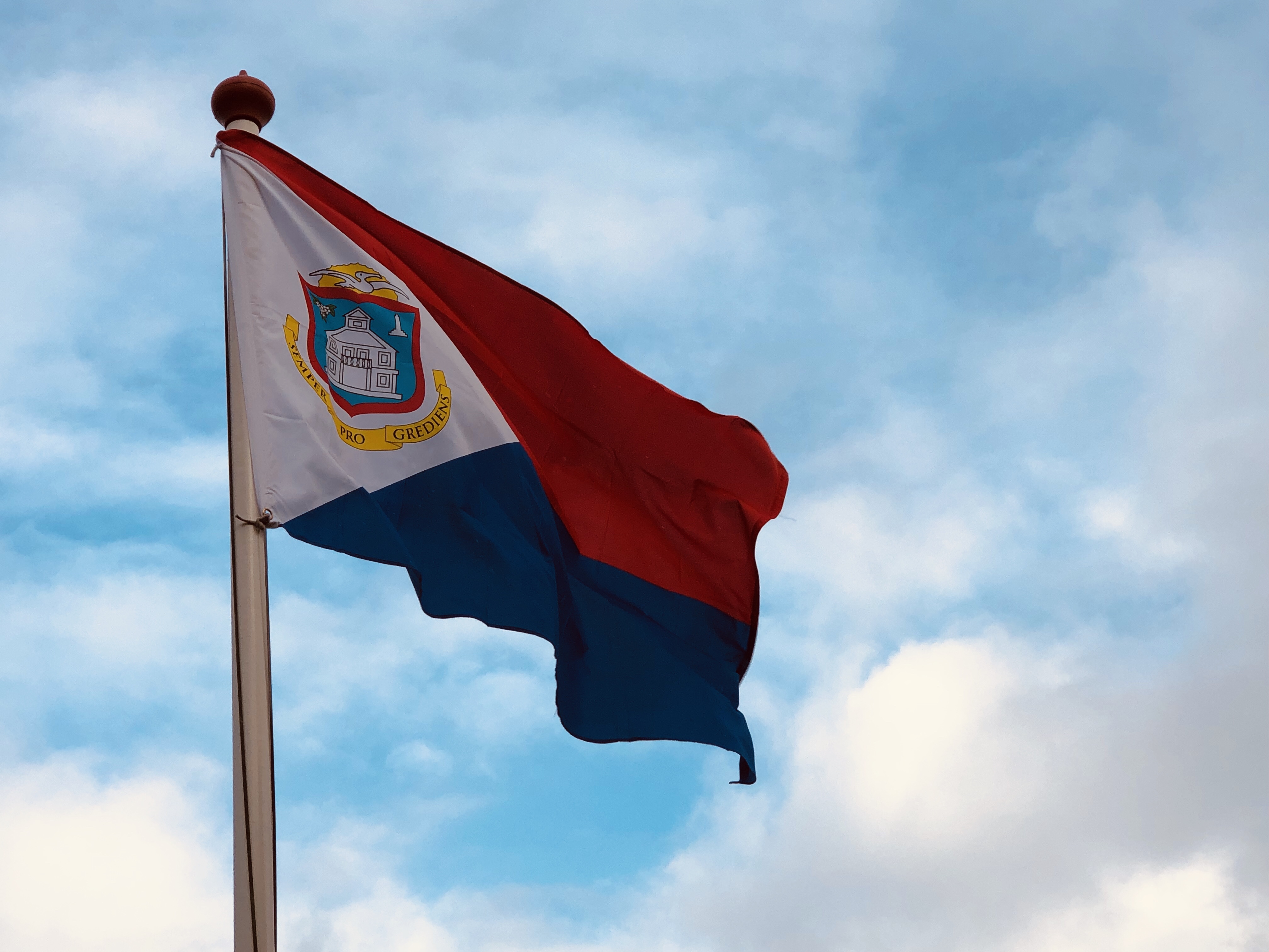 Op 1 juli vermeldt de agenda van Vlagblog maar liefst 8 vlaggen. Het is wat veel, toch een poging vandaag om ze alle 8 te laten wapperen. Nummer 7 in de rij: Sint Maarten