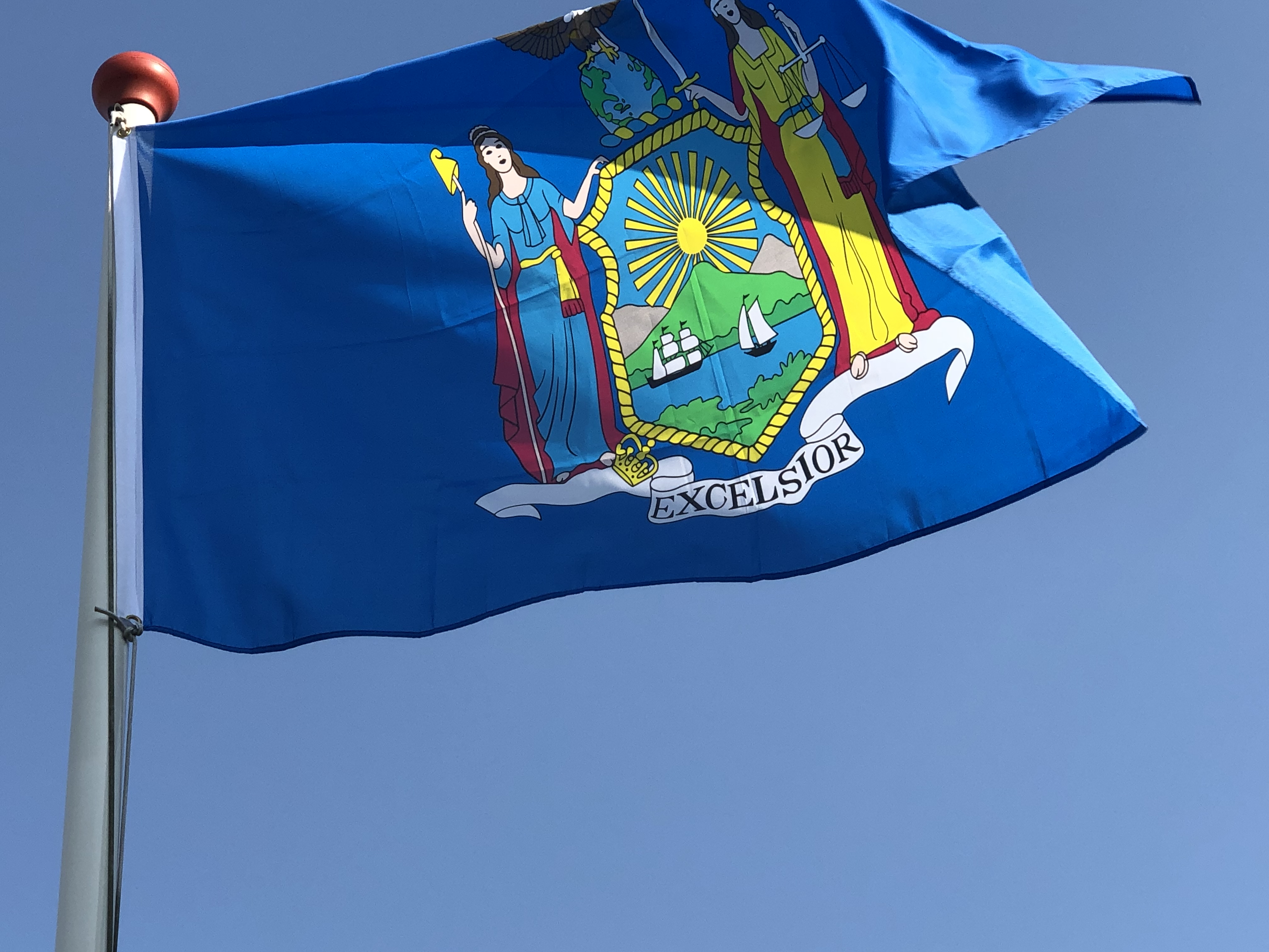 De New Yorkse vlag laat zijn Nederlandse ‘roots’ nog steeds zien. De vlag is een verticale driekleur in blauw, wit, oranje, de kleuren van de vlag van de Republiek der Zeven Verenigde Nederlanden tijdens de stichting van Nieuw Amsterdam in 1625 (maar dan horizontaal).