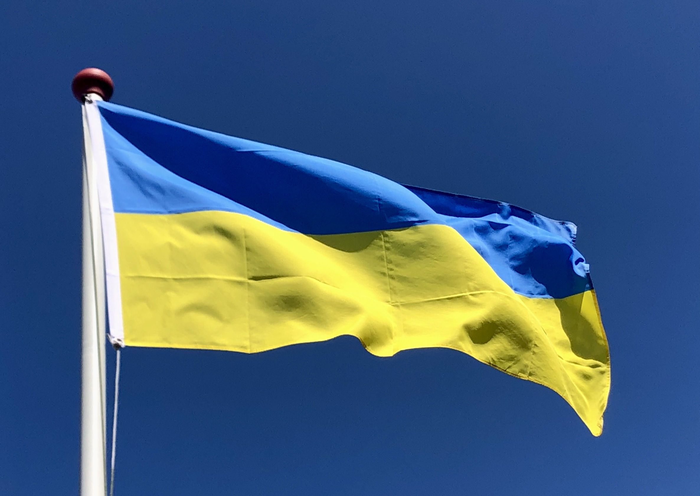 De vlag van Oekraïne bestaat uit twee even brede horizontale banen van blauw en geel.