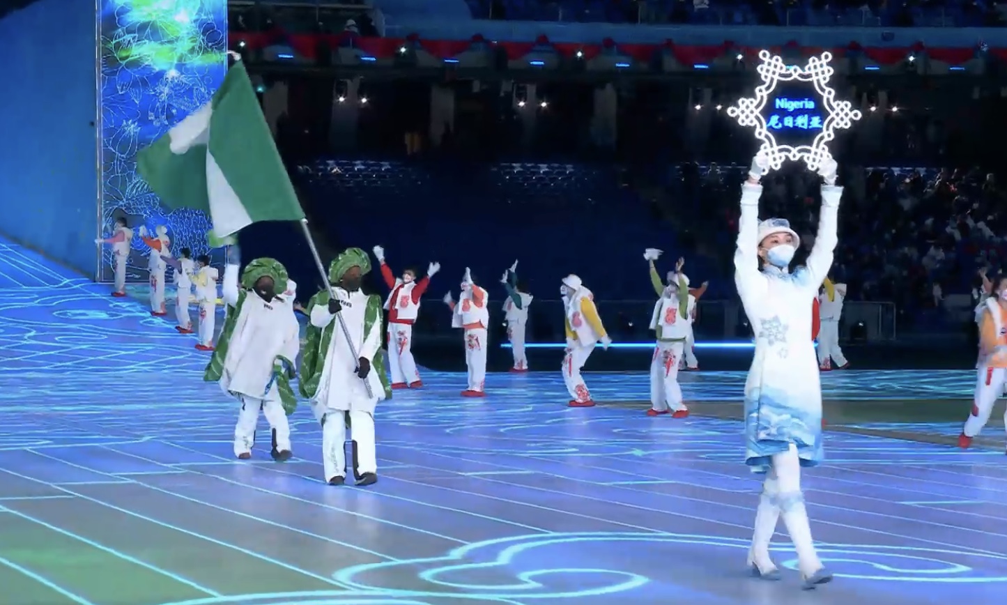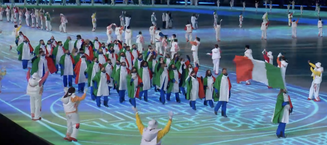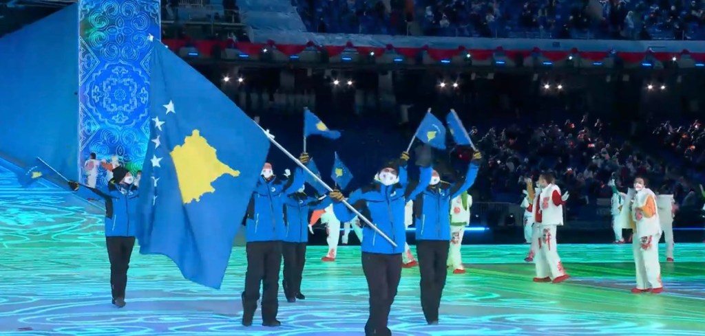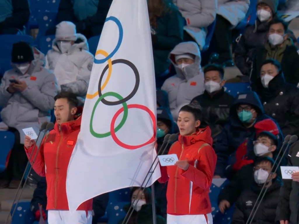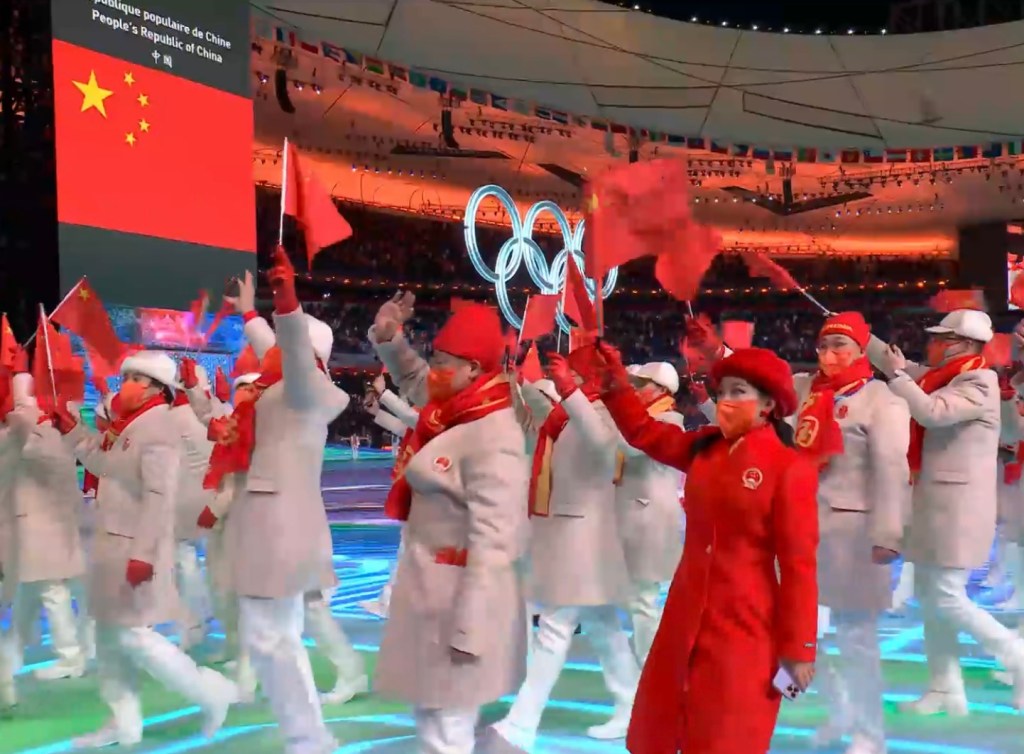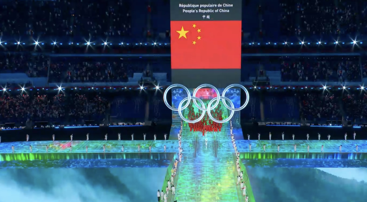 De 24e Olympische WinterspelenDe Olympische ringen rijzen op uit een blok ijsOlympische ringen van ijs in Het VogelnestZoals te doen gebruikelijk opent Griekenland, als bakermat van de Olympische Spelen, de vlaggenparadeEntree van de kleine equipe van EcuadorHet kan het publiek niet ontgaan welk land het stadion binnenkomt, in dit geval EcuadorBinnenkomst van BelgiëDe Belgische equipeTaiwan, dat door China als een afvallige provincie wordt gezien, doet noodgedwongen mee onder de naam Chinese Taipei (Taipei is de hoofdstad van Taiwan, wat vroeger als Formosa bekend stond)Chinese Taipei alias Taiwan, doet dan ook mee onder een speciaal gecreëerde Olympische landenvlagDe andere Chinese ‘dwarsligger’ is Hongkong, wat tot 1997 onder Brits bestuur viel en daarna volgens afspraak werd overgedragen aan China, als ‘speciale bestuurlijke regio’Binnenkomst van de ploeg uit HongkongBinnenkomst van de Brazilianen met hun vlag, de ‘Verde e Amarela’ (‘Groen en Geel’)Entree van de kleine ploeg van Oost-Timor……en die van de niet veel grotere ploeg van LuxemburgDe Luxemburgse ploeg werd begroet door Groothertog Henri, met de alternatieve vlag van Luxemburg, de ‘Roude Léiw’ (‘Rode Leeuw’)Binnenkomst van de kleine ploegen van Nigeria……en GhanaDe grote ploeg van Canada was nummer 27 in de vlaggenparadeEntree van San MarinoDe mini-afvaardiging van KirgiziëBinnenkomsten van Armenië……en SpanjeAls (weliswaar klein) Alpenland mocht Liechtenstein natuurlijk niet ontbrekenIedere equipe werd voorafgegaan door een een dame met een groot formaat sneeuwvlok met de naam van het betreffende land in het Engels en het ChineesBinnenkomst van de Iraanse ploeg……op de voet gevolgd door IJslandUiteraard was het kleine, maar zeer bergachtige prinsdom Andorra ook van de partijBinnenkomst van Finland……en KroatiëSaudi-Arabië debuteert bij de WinterspelenBinnenkomsten van Albanië,……Azerbeidzjan……en LetlandZoals in de inleiding al vermeld, komen Russische sporters uit onder een speciale Olympische vlag, onder de naam ROC (Russisch Olympisch Comité)De vlag van het ROC laat de Olympische ringen zien met daarboven een gestileerde vlam in de nationale Russische kleurenDe grote Franse ploeg, Frankrijk organiseert in 2024 de XXXIIIe Olympische ZomerspelenEntree van de ploegen uit Polen, ……Puerto Rico……en BoliviaUiteraard heeft Noorwegen als noordelijk land een grote ploeg afgevaardigdKosovo is aan de beurtDe Kosovaarse ploegEntree van de Verenigde Staten……met een flinke ploegDe ploeg van Amerikaans Samoa is heel wat kleiner……maar wél opvallender met de luchtige kledij (bij -5ºC) van de geoliede vlagdrager Nathan CrumptonBinnenkomst van de Nederlandse ploegVoorop: vlaggendragers Kjeld Nuis en Lindsay van ZundertEntree van Trinidad en Tobago, ……Peru……en HaïtiEen Filipijnse supporter met vlag op de tribuneDe equipe uit SlowakijeEnthousiaste Zuid-Koreaanse supporters op de tribuneBinnenkomsten van Montenegro, …—de grote ploeg uit Zwitserland, ……die van Nieuw-Zeeland……en DuitslandPrins Albert van Monaco was ook naar China overgekomen om zijn landgenoten aan te moedigenBinnenkomst van Australië……en als een-na-laatste land komt Italië binnen, dit land organiseert de Winterspelen van 2026 in Milaan en Cortina d’AmpezzoHekkensluiter is uiteraard het gastland ChinaBinnenkomst van de grote Chinese ploegVlaggenzwaaiende Chinese deelnemersDe thuisploeg werd enthousiast onthaald in het VogelnestDe Olympische (stadion)vlag wordt binnengebrachtDe sporters hebben de vlag op het podium overgedragen aan militairen die de vlag zullen hijsen, naast de vlag van ChinaDe Olympische vlag wordt gehesenEen kleinere Olympische vlag zal dienen om de Olympische eed bij af te leggenDe Olympische eed wordt uitgesproken op het vlagpodium……en dat gaat in duetDe finale van de opening nadert met het aansteken van de Olympische vlam in het midden van een enorm ijskristal, waarin de namen van de deelnemende landenDe Olympische vlam is geplaatstHet Olympisch vuur van de Winterspelen 2022Als afsluiting is er vuurwerk, o.a. in de vorm van de Olympische ringen