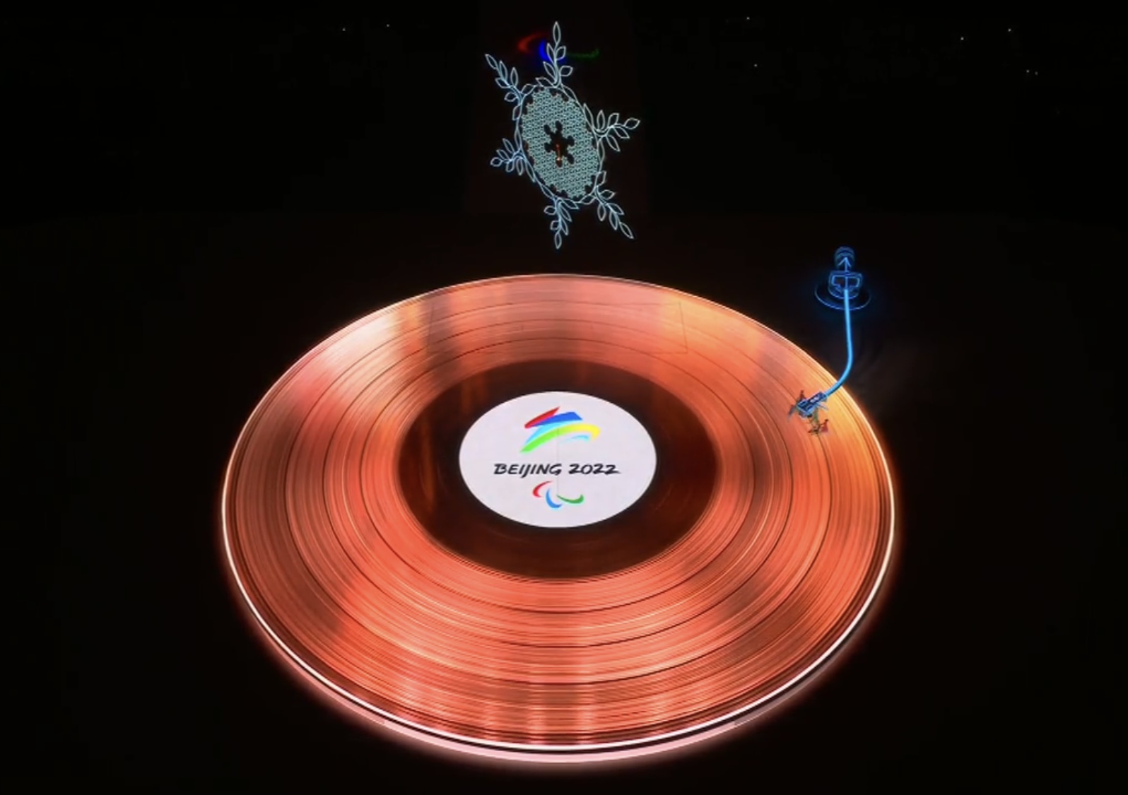 Een hele grote pick-up-arm wordt op een plaat gelegdDe gouden plaat met het Bejing 2022-logo op het label begint te draaienBovenop de groevenVier harpistes komen in beeld……en de drie agitos, de symbolen van de Paralympische SpelenOnder het grote sneeuwkristal komen de ploegen de arena binnen met hun nationale vlaggenOverzichtsbeeld van de opkomst van de paralympiërs en de dames met de landennamenTweemaal Shuey Rhon Rhon, de mascotte van de Paralympische Winterspelen 2022De dames met de namen van de deelnemende landenVlaggenparade: links zien we de vlaggen van o.a. Frankrijk, Noorwegen en Israël, rechts Japan en GriekenlandVlaggen van o.a. Noorwegen, Brazilië, Frankrijk en IranNoorwegen en DenemarkenDe Spaanse vlagDe vlaggen van o.a. Georgië, IJsland, Kroatië, Canada en SpanjeDe vlaggen van o.a. Roemenië, de Verenigde Staten, China en KazachstanDe vlaggen van o.a. Liechtenstein, Nederland en ChinaDe vlaggen van o.a. Puerto Rico, Slowakije, Liechtenstein en DuitslandIPC-voorzitter Andrew Parsons begint aan zijn speech tegen de achtergrond van de vlaggen van de deelnemende landenParsons’ toespraak was een oproep tot vrede en verdraagzamheidDaarna is de tijd gekomen om de Paralympische vlam te doven die middenin het sneeuwkristal brandt……met onder het kristal ingenieuze technische hoogstandjesTotaaloverzichtDe camera zoemt in op het kristal met de vlam……en zijn we getuige van de laatste ogenblikken van het Paralympische vuur……wat over vier jaar in Italië weer zal ontbrandenDe vlam is gedoofd en de ceremonie komt tot een einde……met een groots vuurwerk