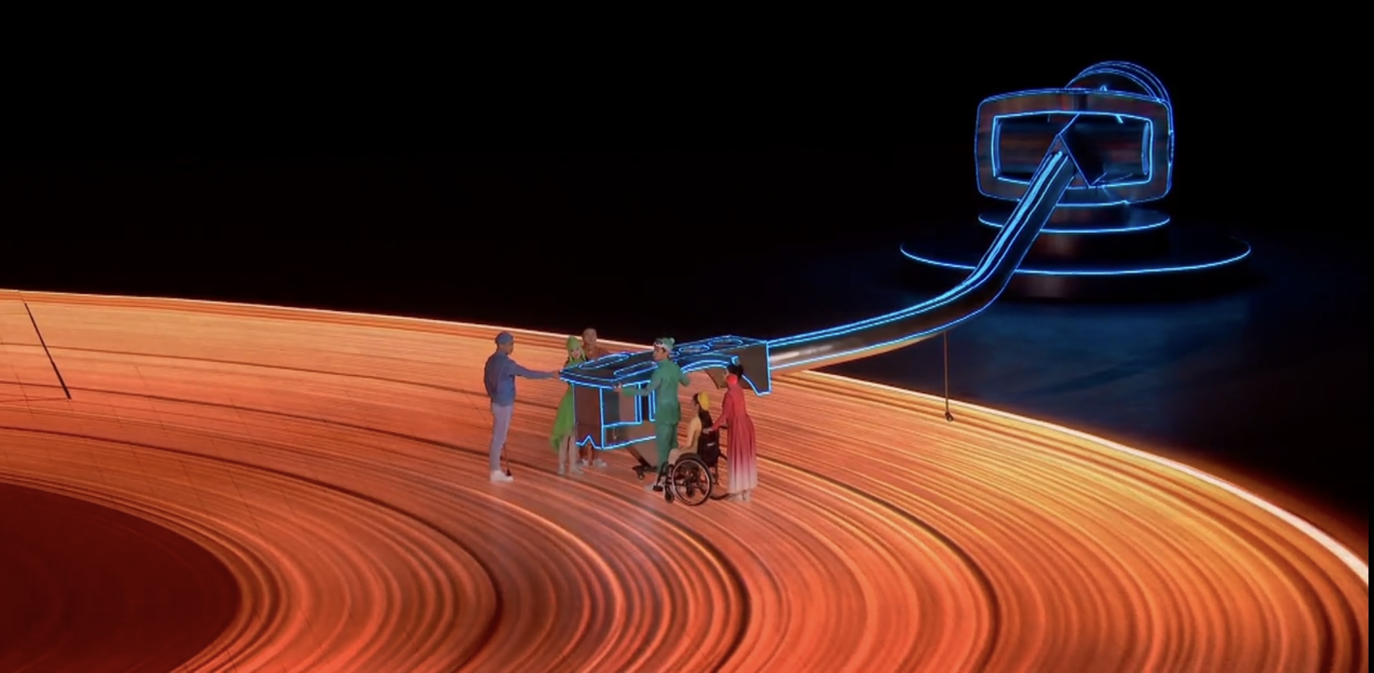 Onthulling van Someity, afgelopen mei, in gezelschap van een 3D-versie van het agitos-symbool (screenshot)