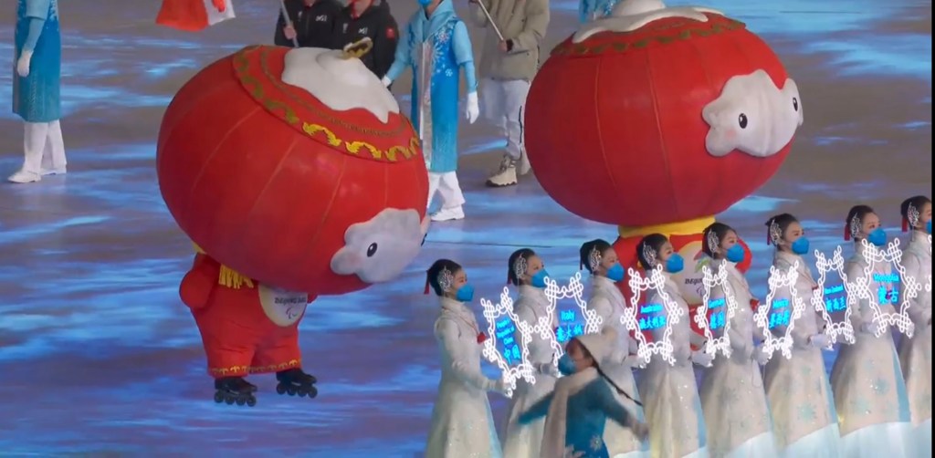 De Paralympische Spelen maken ook gebruik van een mascotte: voor de versie van 2022 is dat een rood figuurtje, Shuey Rhon Rhon genaamd, een antropomorfische Chinese lampion. In China staan lampions symbool voor oogst, viering, warmte en licht. De mascotte is een ontwerp van Jiang Yufan (1998), een studente aan de Jilin Art Institute of Design in Changchun.