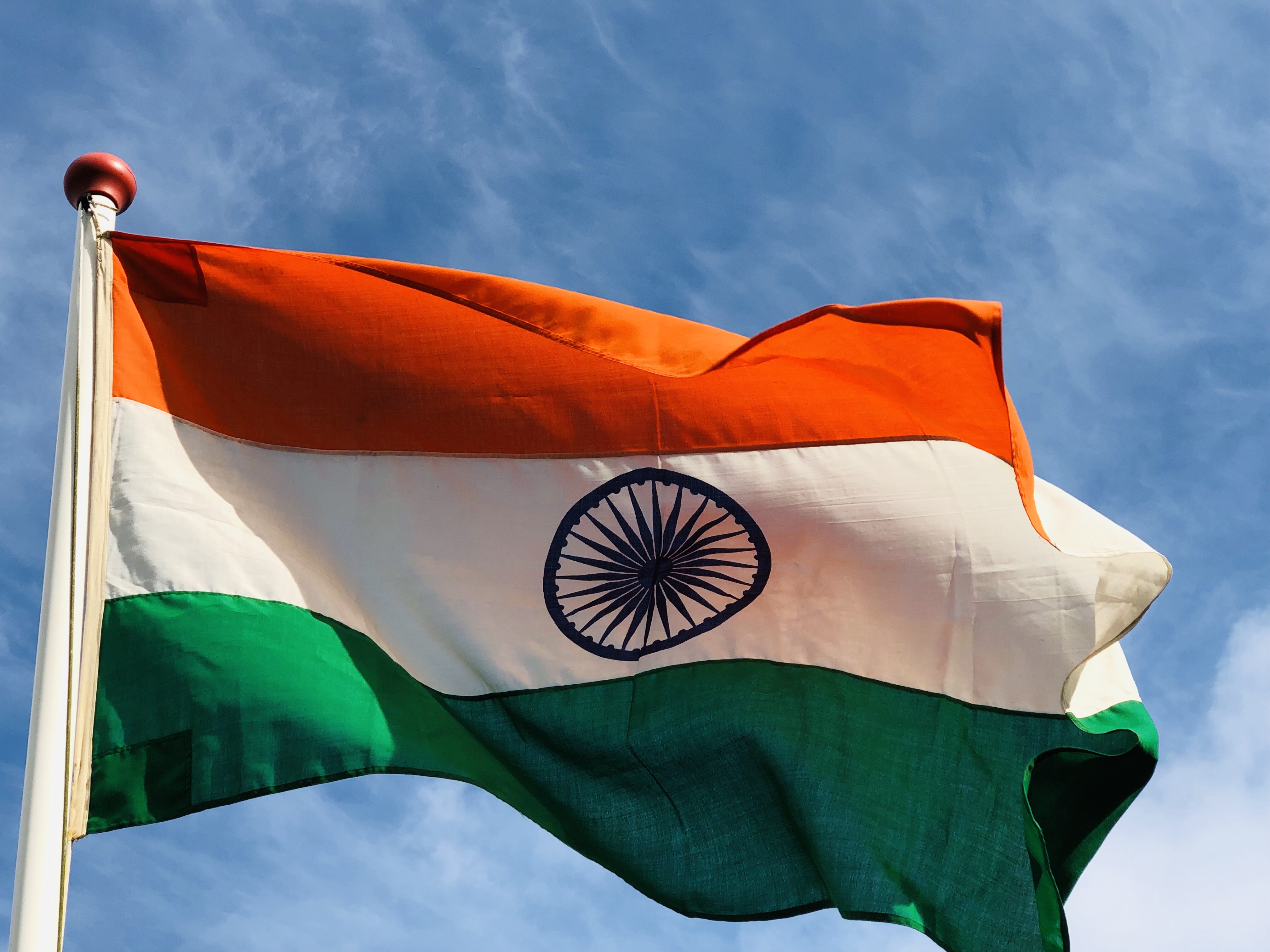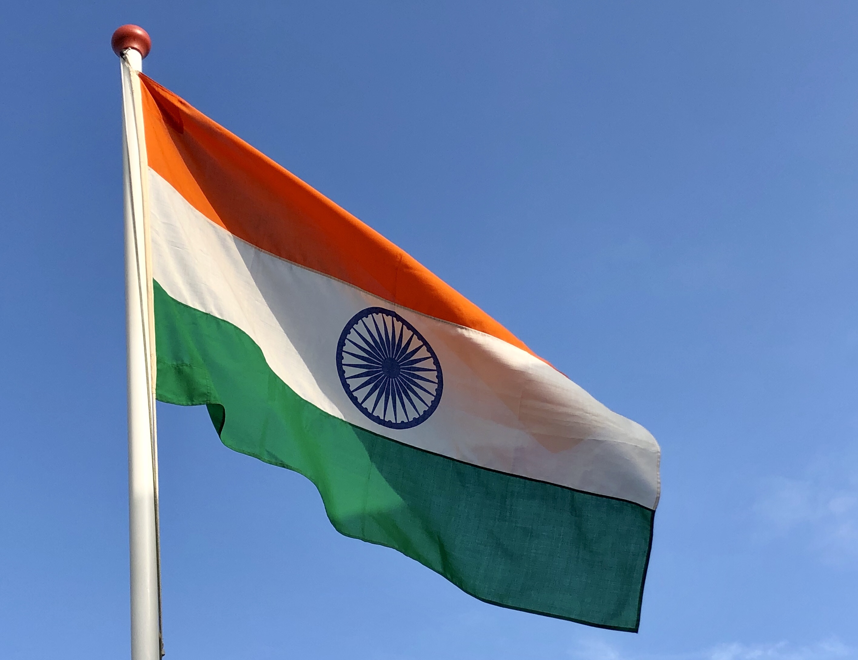 De Indiase vlag werd officieel aangenomen op 22 juli 1947. De vlag is een horizontale driekleur van saffraangeel (in de praktijk meer oranje), wit en groen. In het midden van de witte baan is een cirkelvormig symbool geplaatst, de zogenaamde asoka chakra, een wiel met 24 spaken.