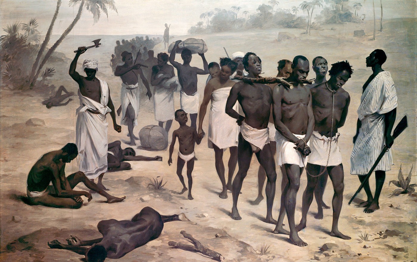 Konvooi van slaven in Afrika door een onbekende schilder, circa 1859, collectie Musée Quai Branly (publiek domein)