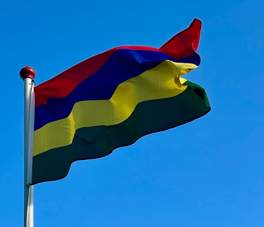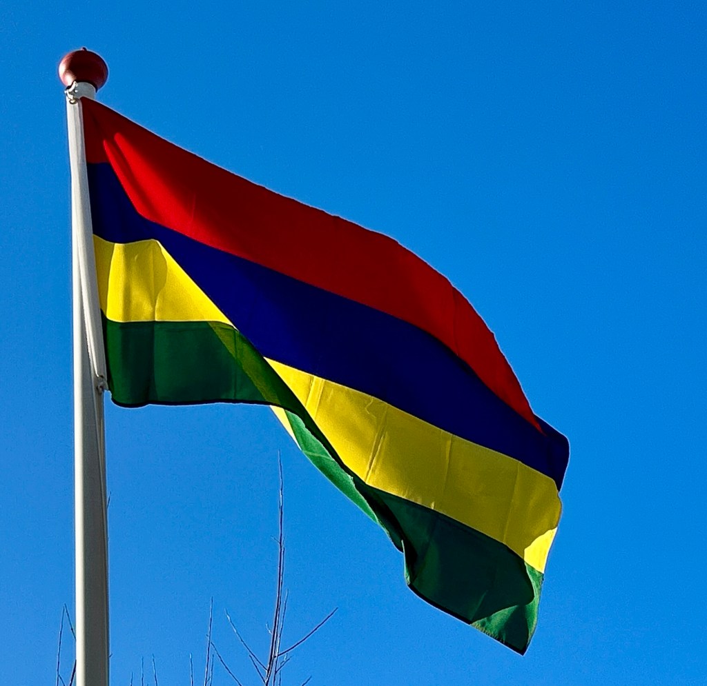 De vlag van Mauritius werd geïntroduceerd op 12 maart 1968, toen Mauritius een onafhankelijke republiek werd. Het is een horizontale vierkleur in rood, donkerblauw, geel en groen.