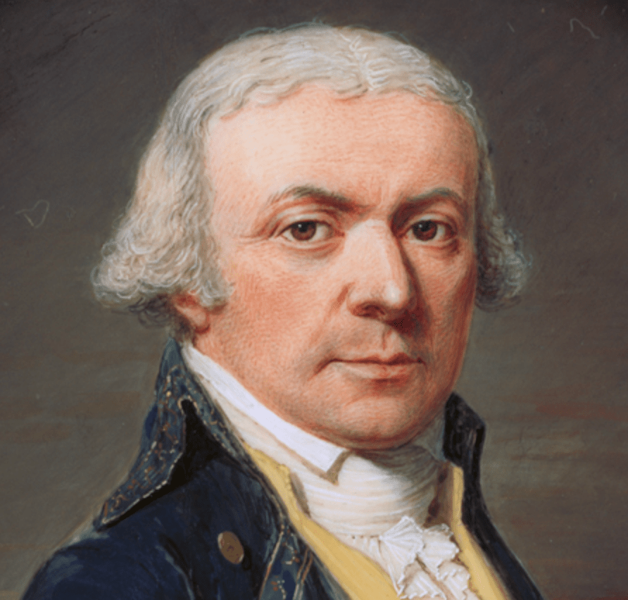 Links: de SS Andrew Doria vuurt saluutschoten af voor de kust van Sint Eustatius op 16 november 1776, schilderij door Phillips Melville, U.S. Navy Art Collection / Rechts: Gouverneur Johannes de Graaf (1729-1813), door een onbekende schilder, New Hampshire Statehouse