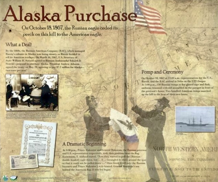 De officiële overdracht was een half jaar later, op 18 oktober 1867 in het fort van Sitka, waarbij de Russische vlag gestreken werd en de Amerikaanse gehesen. En dat is vandaag 158 jaar geleden.