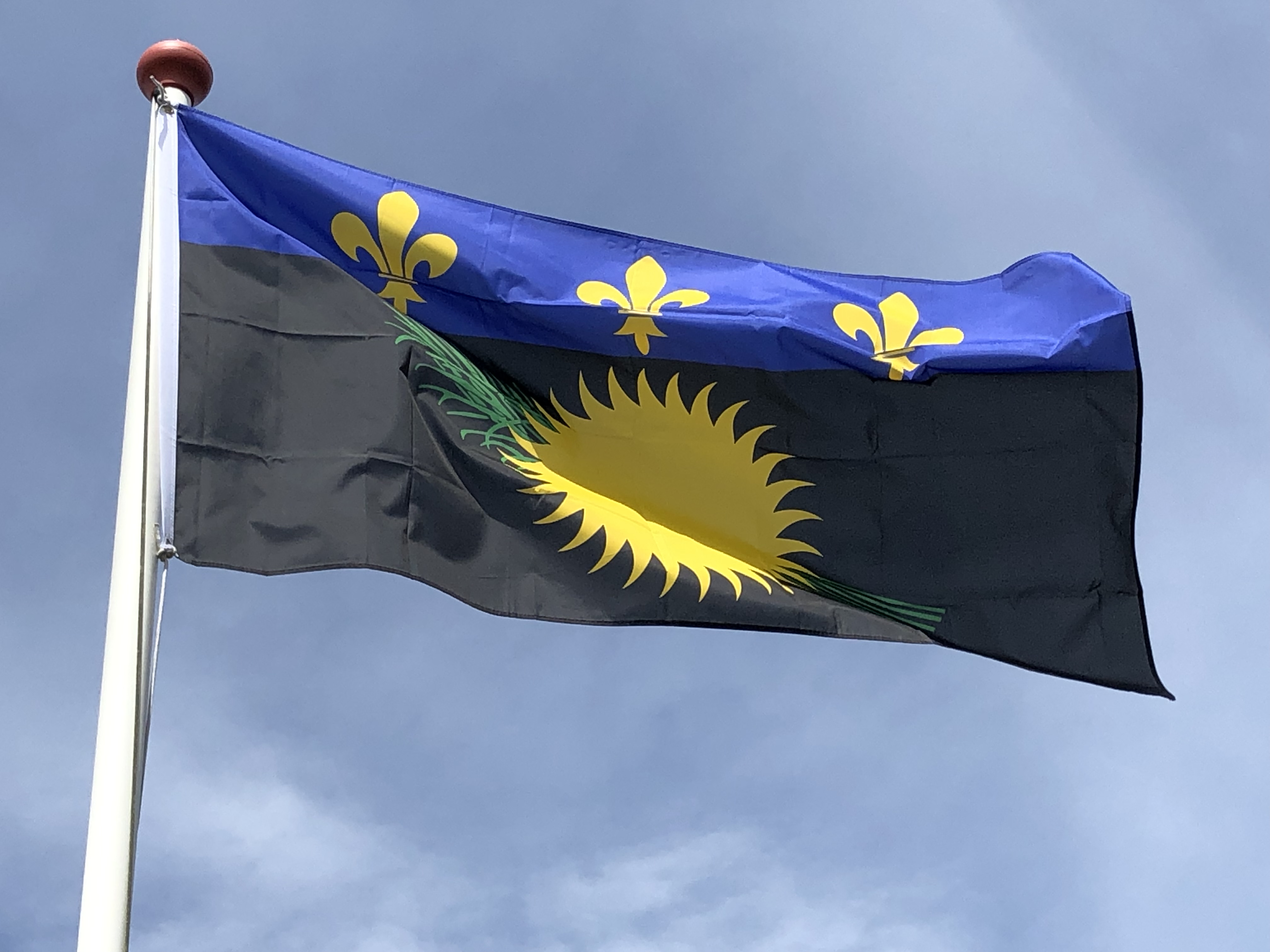 Vandaag twee vlaggen. En niet toevalligerwijs met dezelfde historische achtergrond: de afschaffing van de slavernij. Vanmorgen Frans Guyana, vanmiddag Guadeloupe.