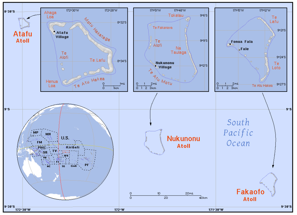 Om wat verder in te zoomen op Tokelau, hieronder een detailkaart: