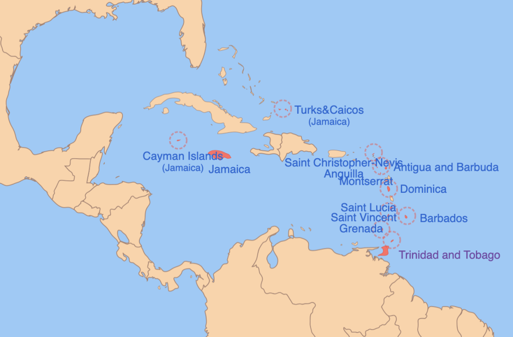 Op 3 januari 1958 bracht het Verenigd Koninkrijk het bestuur van een groot aantal Caribische gebieden bij elkaar, met de oprichting van de West Indies Federation (West-Indische Federatie), waarvan Barbados deel uitmaakte, tezamen met Antigua & Barbuda, Dominica, Grenada, Jamaica (inclusief de Kaaimaneianden en de Turks- en Caicoseilanden), Montserrat, Saint Kitts, Nevis, Anguilla, Saint Lucia, Saint Vincent en de Grenadines en Trinidad en Tobago.