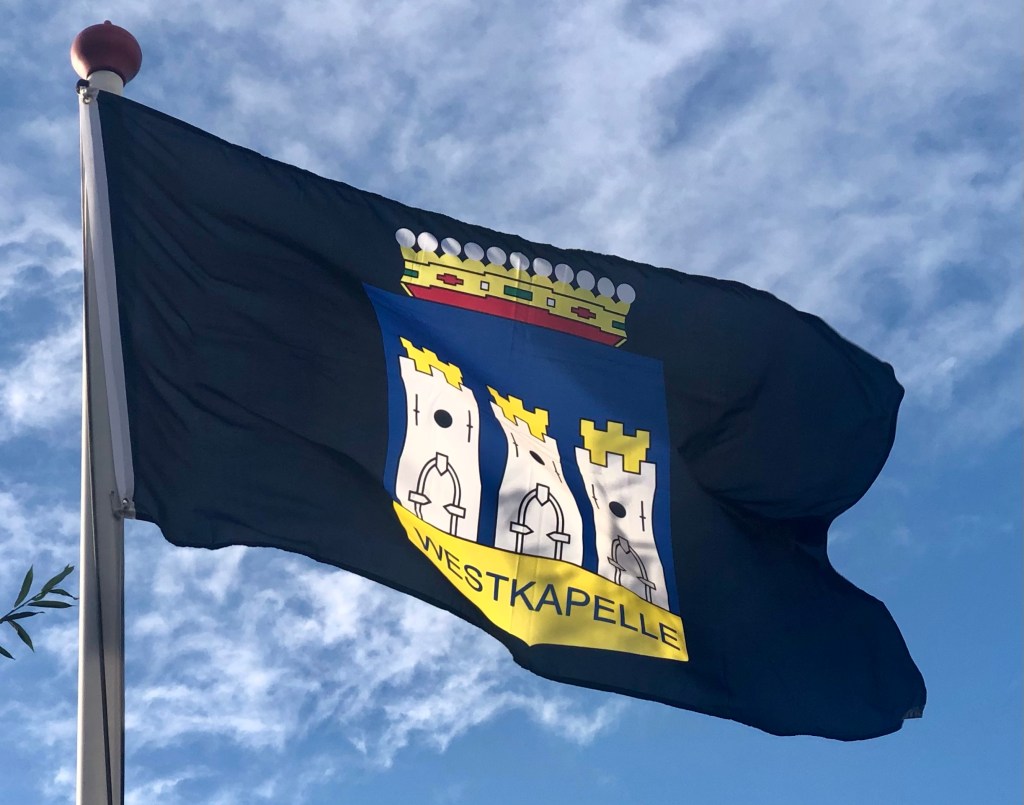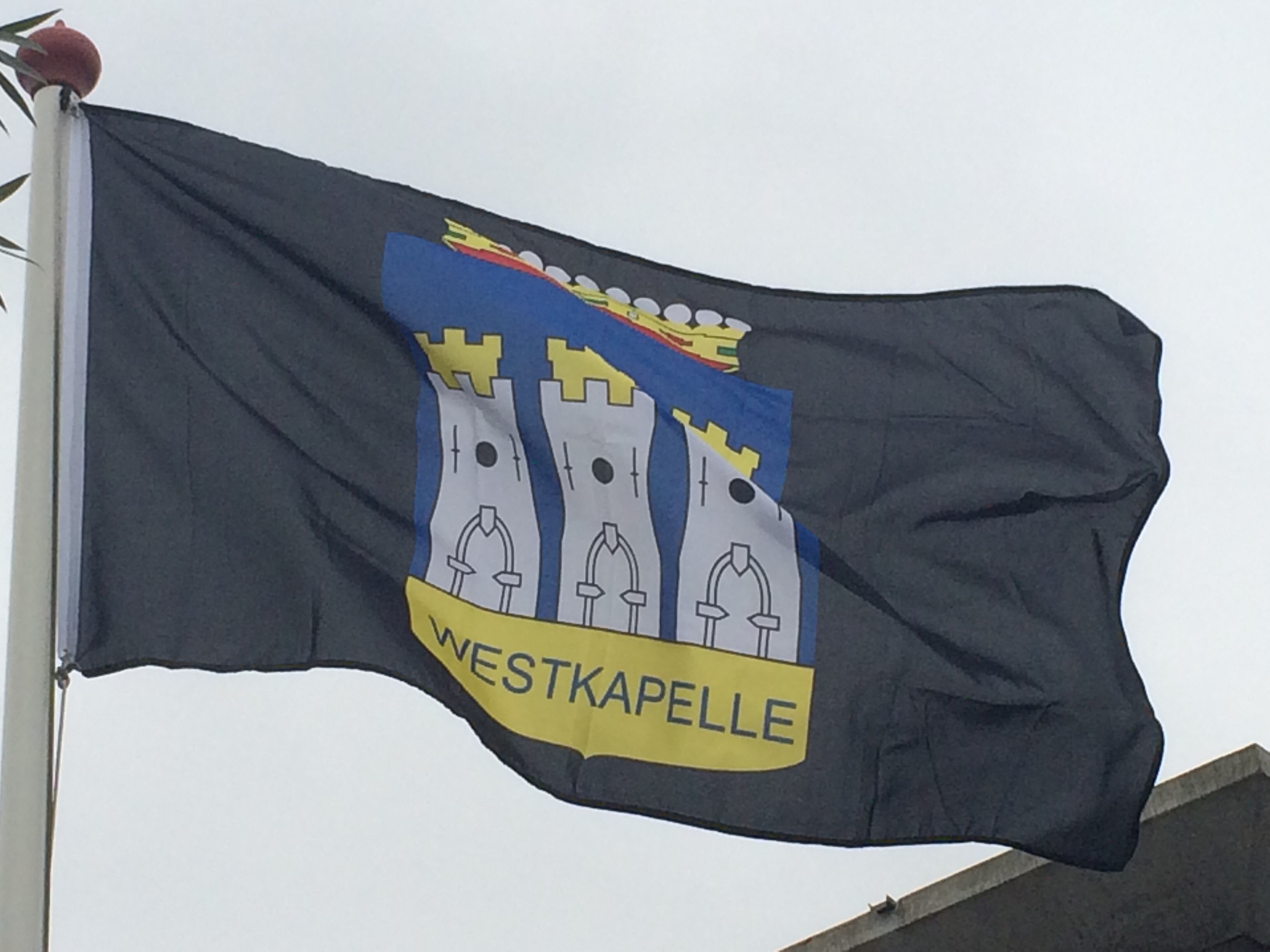In een uitgave van de Veersekrant werd vervolgens een oproep geplaatst dat bij “voldoende inschrijvingen tegen een gereduceerde prijs een officiële vlag van de gemeentekern” besteld kon worden. De getoonde vlag was zwart met het gekroonde stadswapen in het midden met de naam WESTKAPELLE in kapitalen op het terras (het gele vlak onder de drie torens).