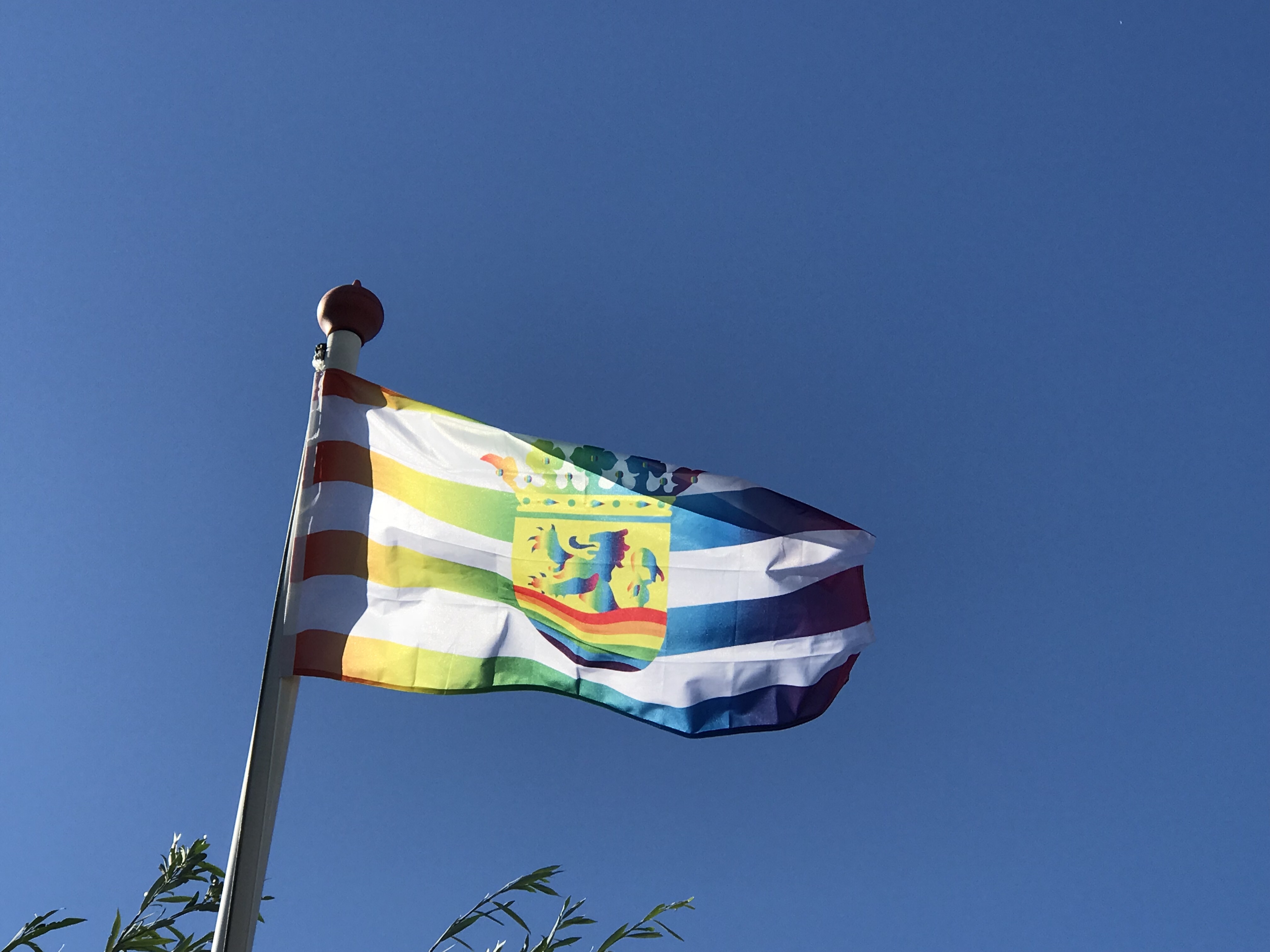 De vlag is een herdenkingsvlag die speciaal voor de herdenking van de Slag om de Schelde is ontworpen.