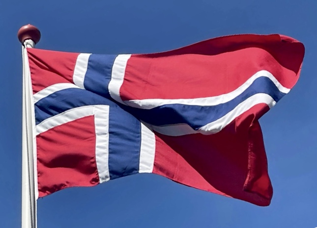 De Noorse vlag werd aangenomen op 4 mei 1821 en combineert eigenlijk twee vlaggen: die van Denemarken, de Dannebrog en de blauwe kleur uit de Zweedse vlag. Denemarken en Noorwegen waren lange tijd in een personele unie met elkaar verbonden, waarbij de Deense vlag ook in Noorwegen wapperde. Het blauw uit Zweden representeerde in 1821 de band met Zweden, met welk land het op dat moment een koning deelde.