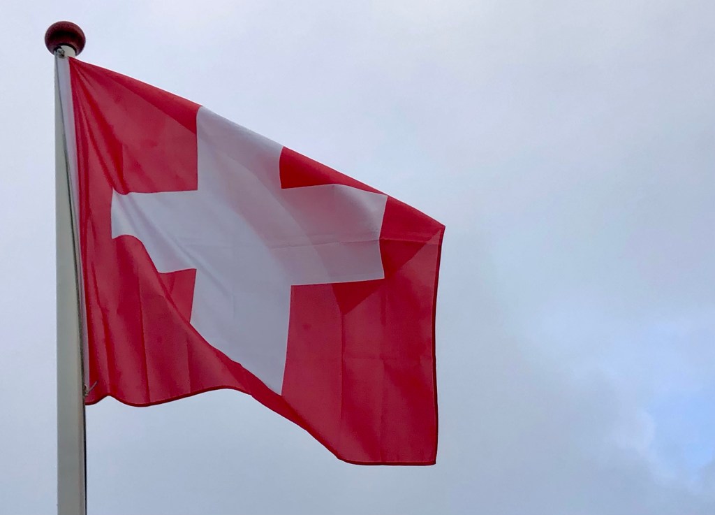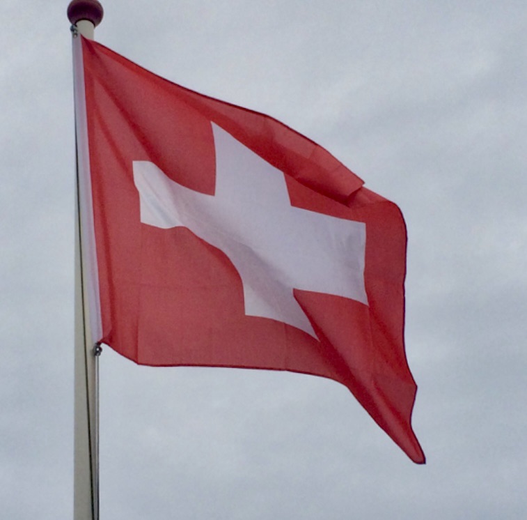 Een Zwitserse motorboot op bezoek in Nederland met rechthoekige Zwitserse vlag (fotograaf onbekend)